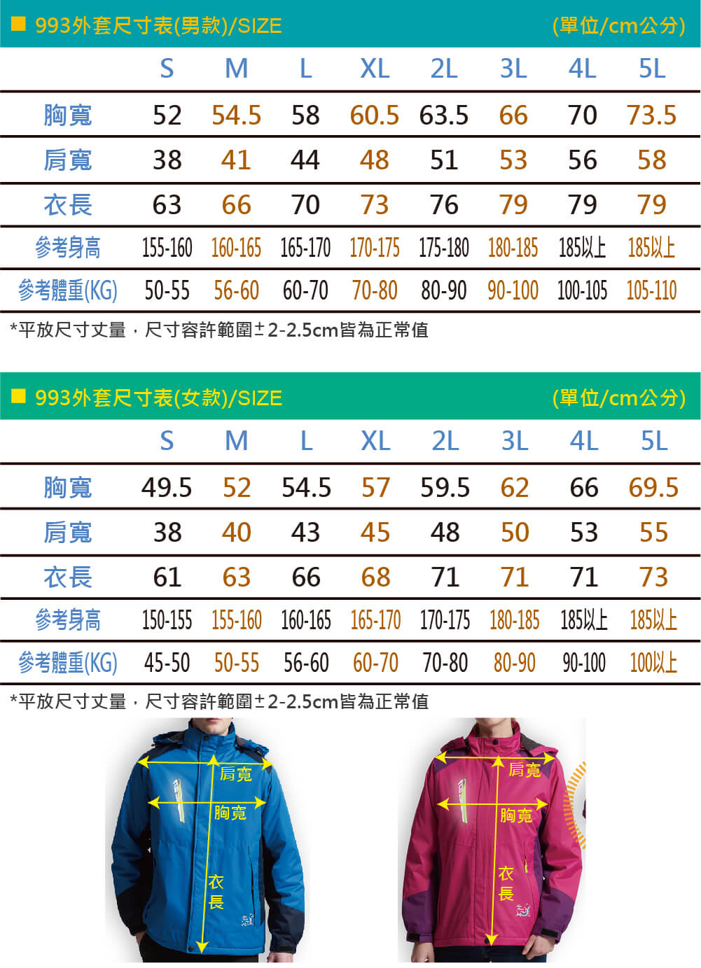 -尺寸S~5L