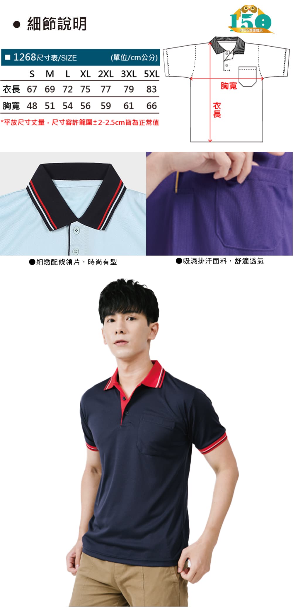 1268輕量排汗條紋領時尚中性短袖POLO衫