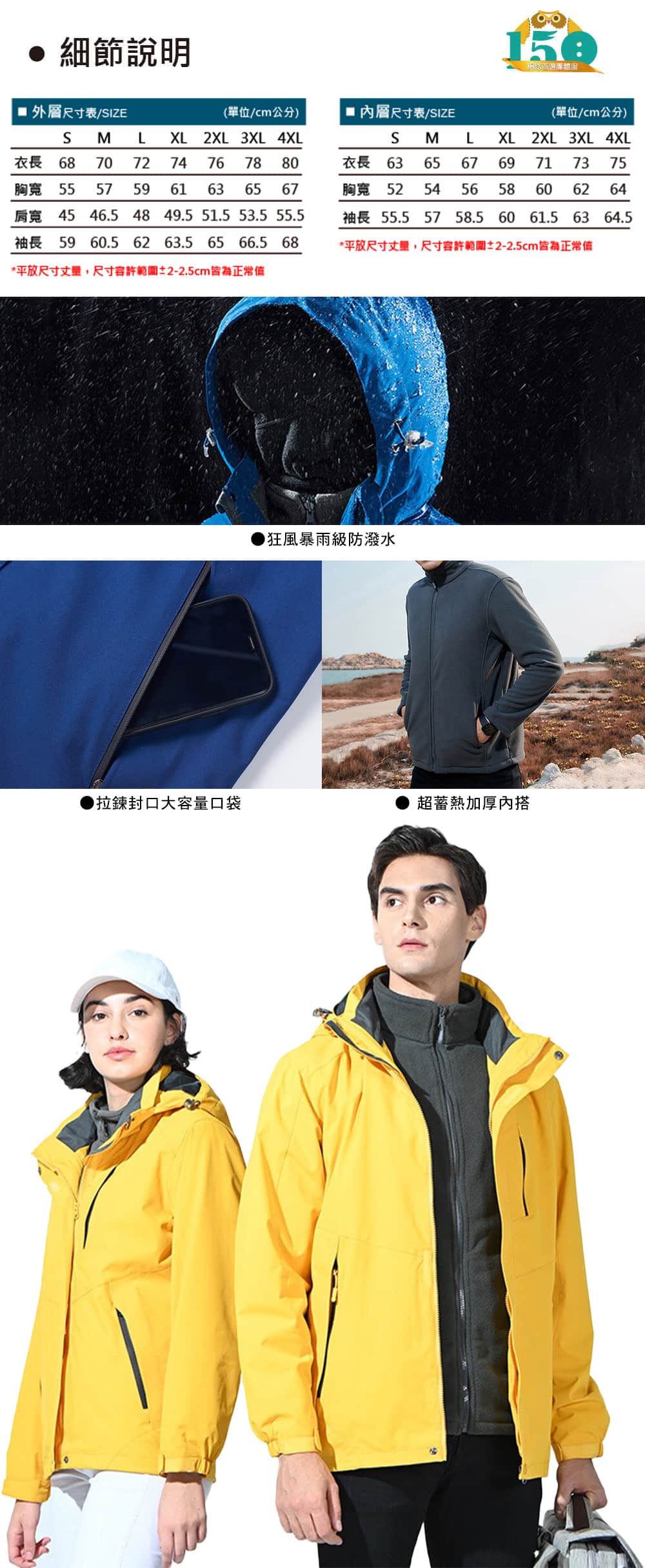 -拆卸式拉鍊設計,內外穿脫多樣搭配
