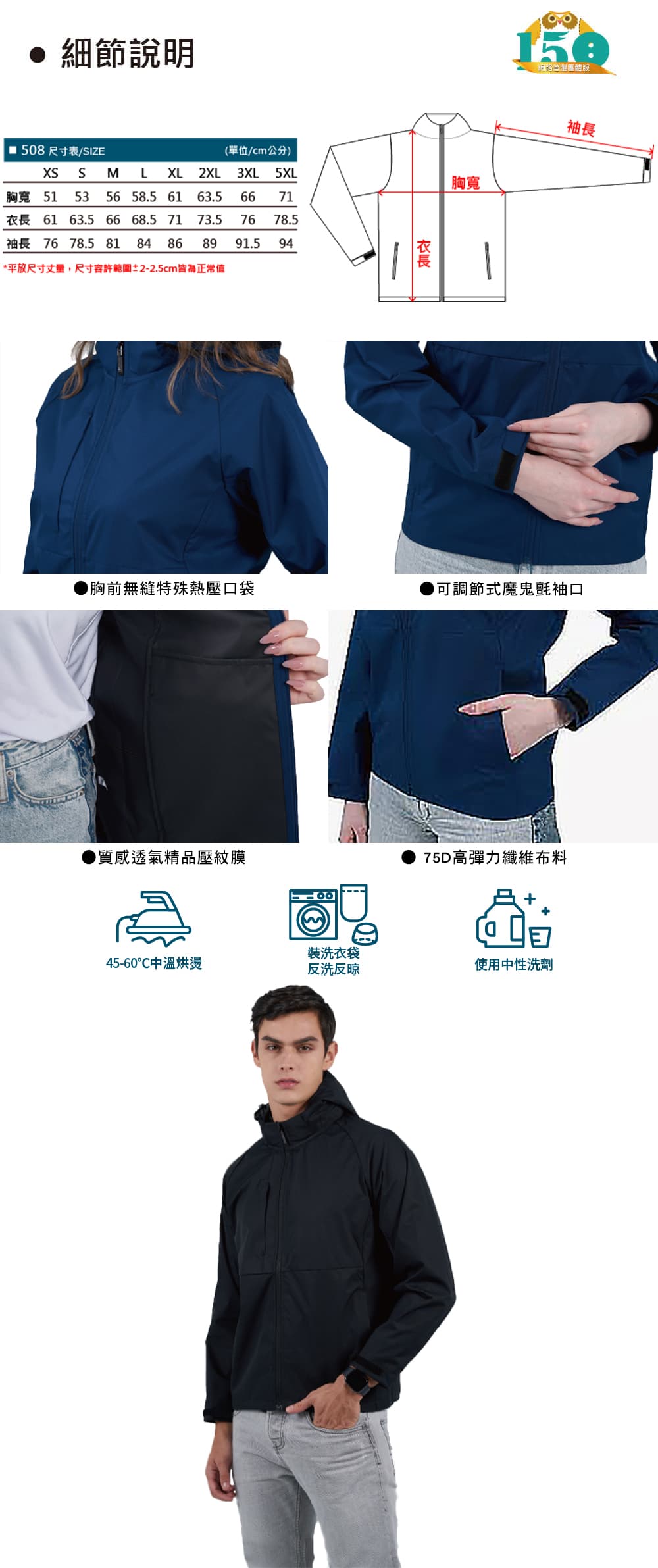 品牌款508 高彈力壓紋膜可拆帽外套