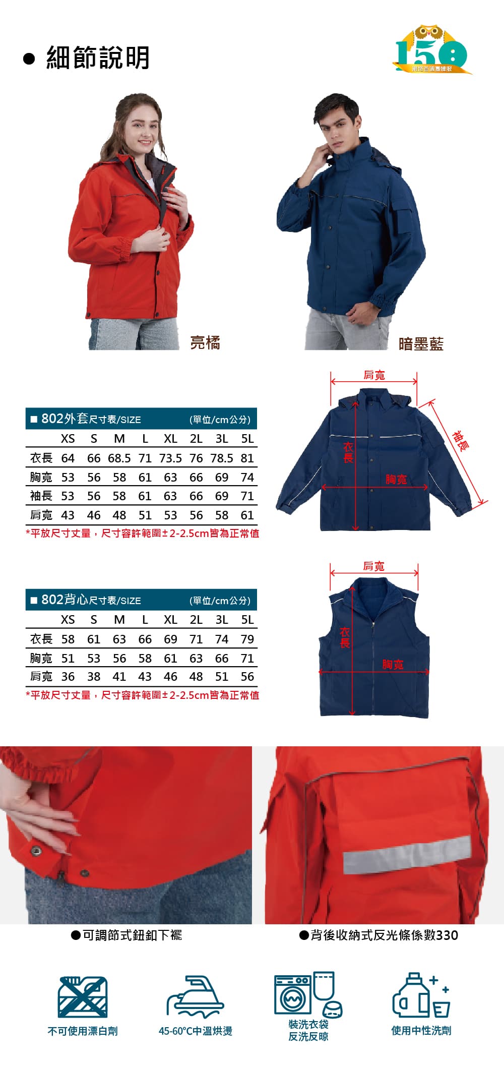 品牌款802可拆帽透濕透氣多功能收納式反光兩件式外套