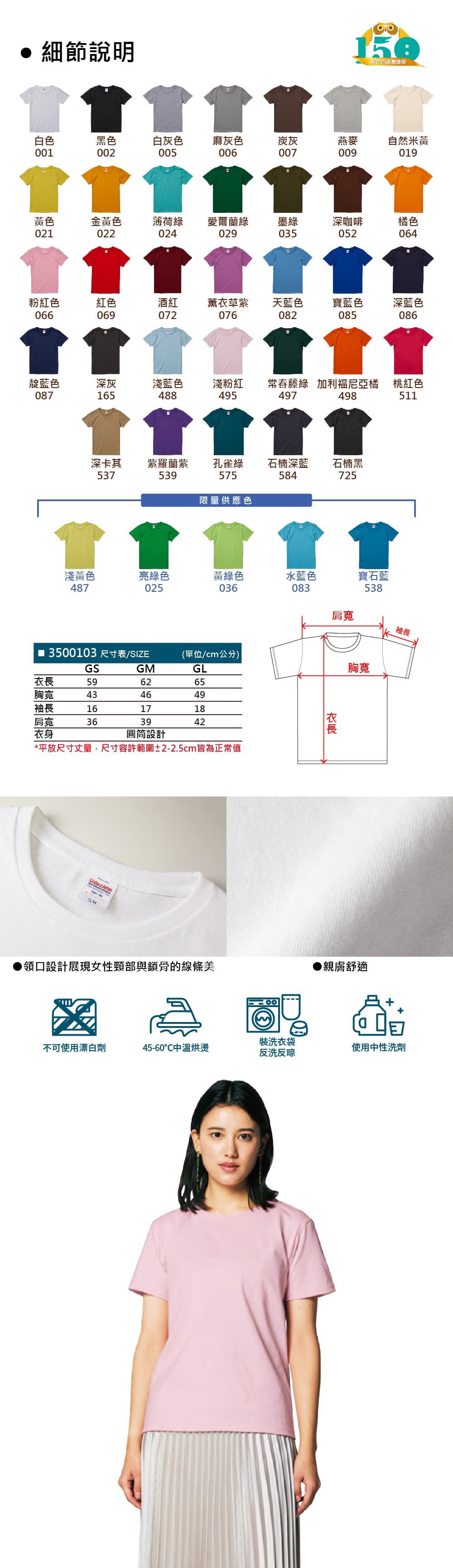 -領口加強雙針縫線設計,耐洗,耐穿,不易鬆脫