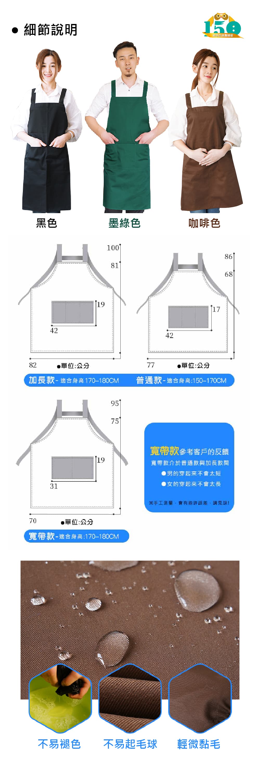 適用:餐飲業/飲料店/烘培業/手工藝教室/工作圍裙/全身圍裙/客製圍裙