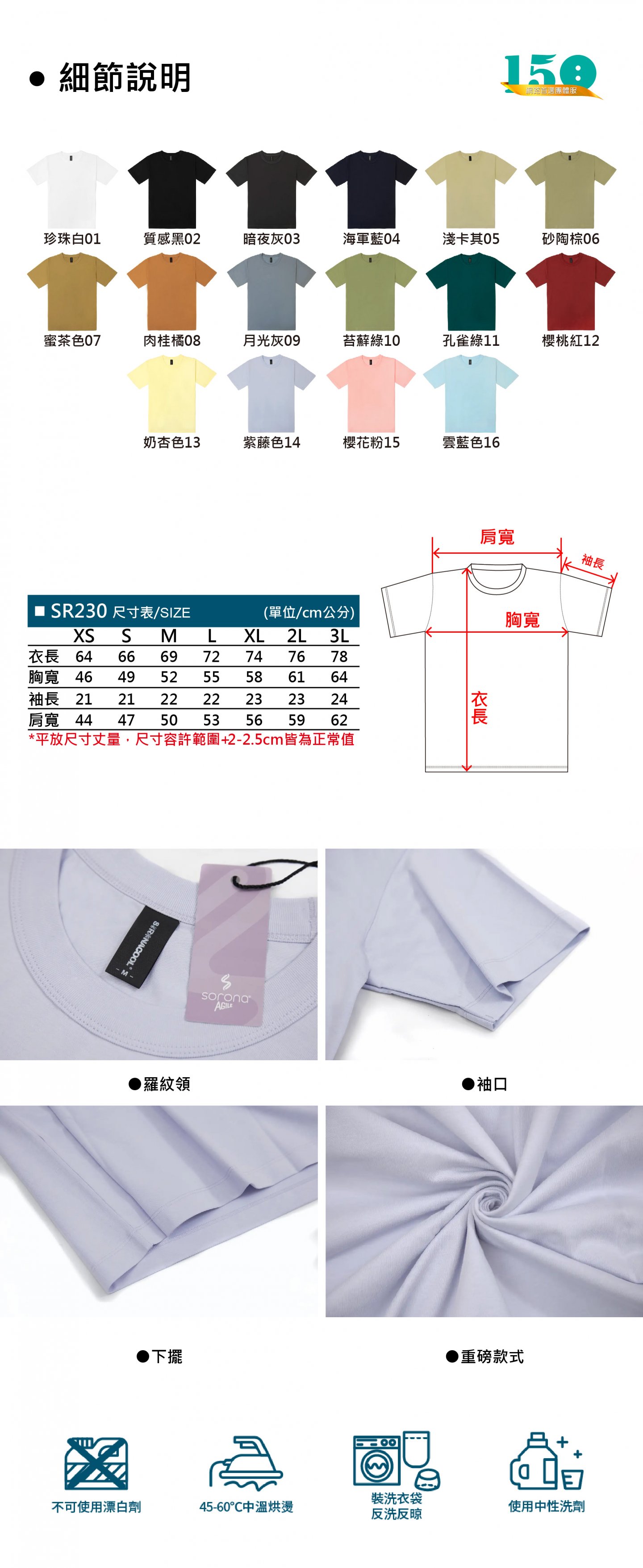 SR230系列 頂級重磅寬版落肩涼感抗菌T恤