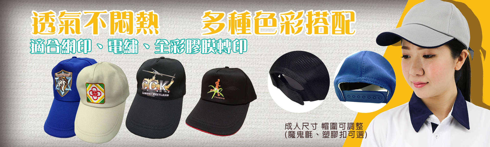 300頂以上可以訂做網頁上沒有的配色方式、可以加長帽沿(另付價差)