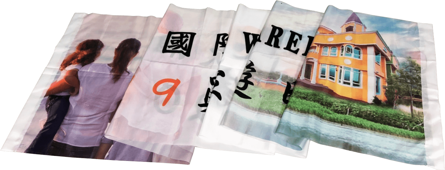 雙透布:布料,會透光,以昇華方式製做,兩面色彩一樣鮮豔飽和