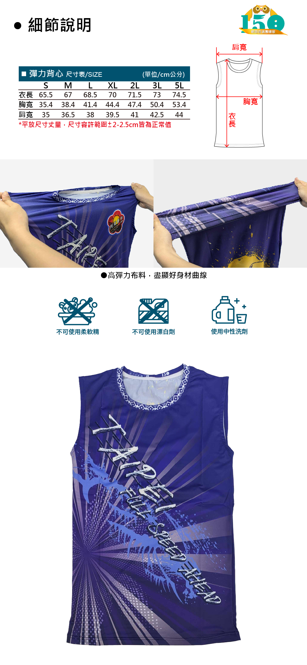 (可依照平常選短T的尺碼下單,亦即依般短T穿S號的人,製作緊身背心可依然選擇S號。)