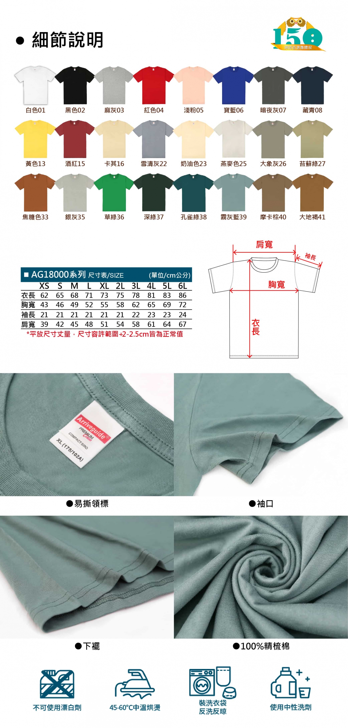 AG18000系列180克26支紗緊密賽洛紡頂級精梳棉圓筒T恤